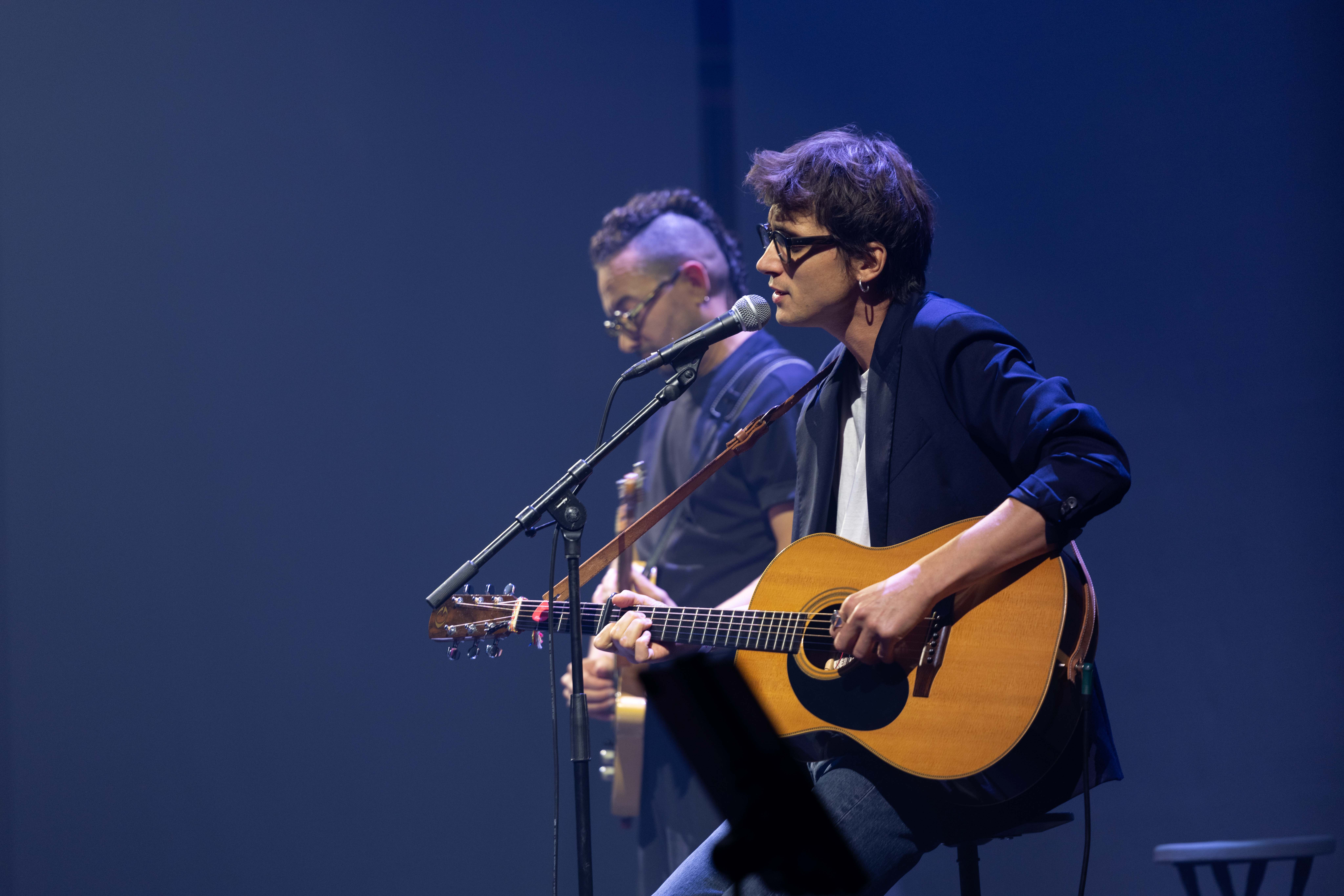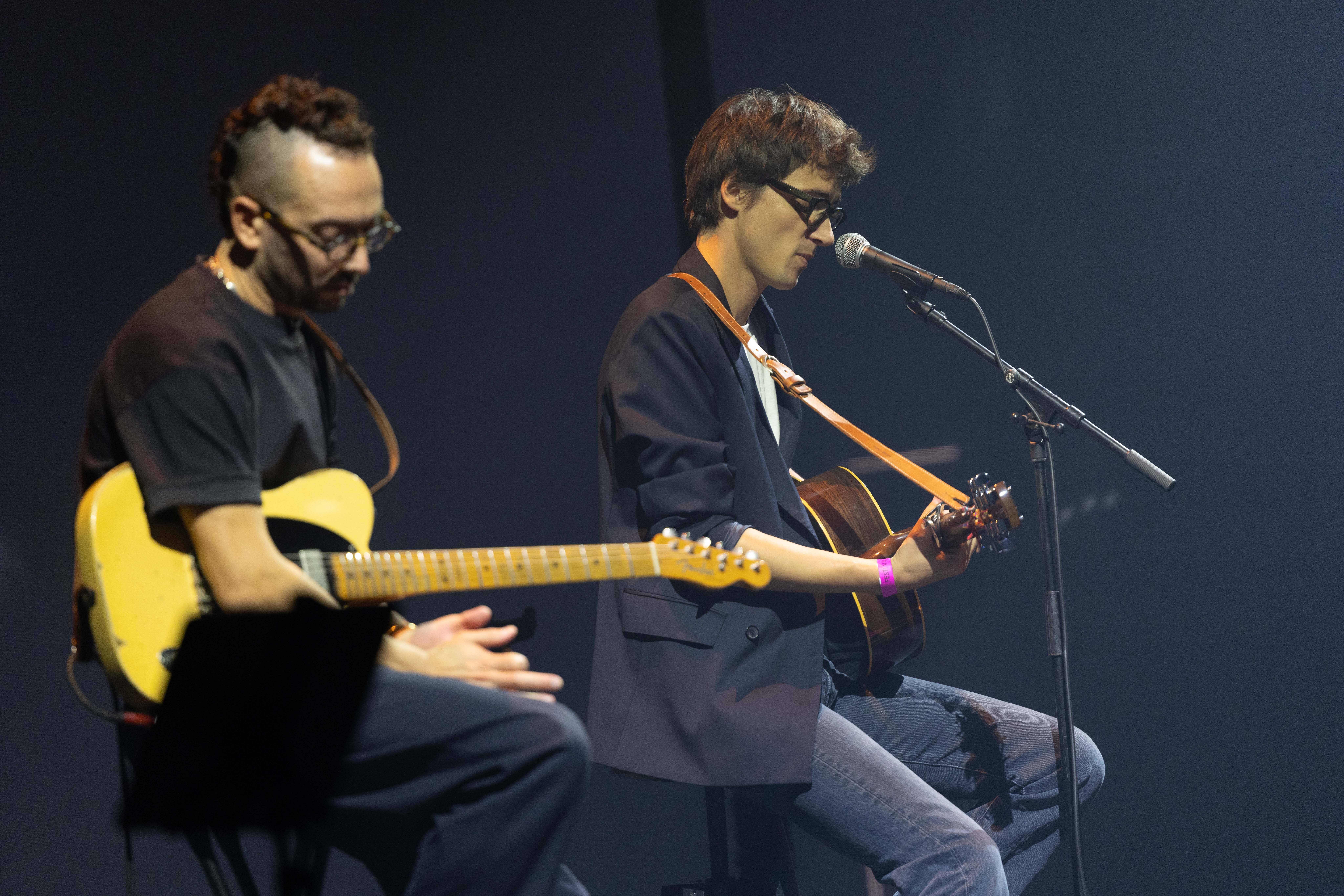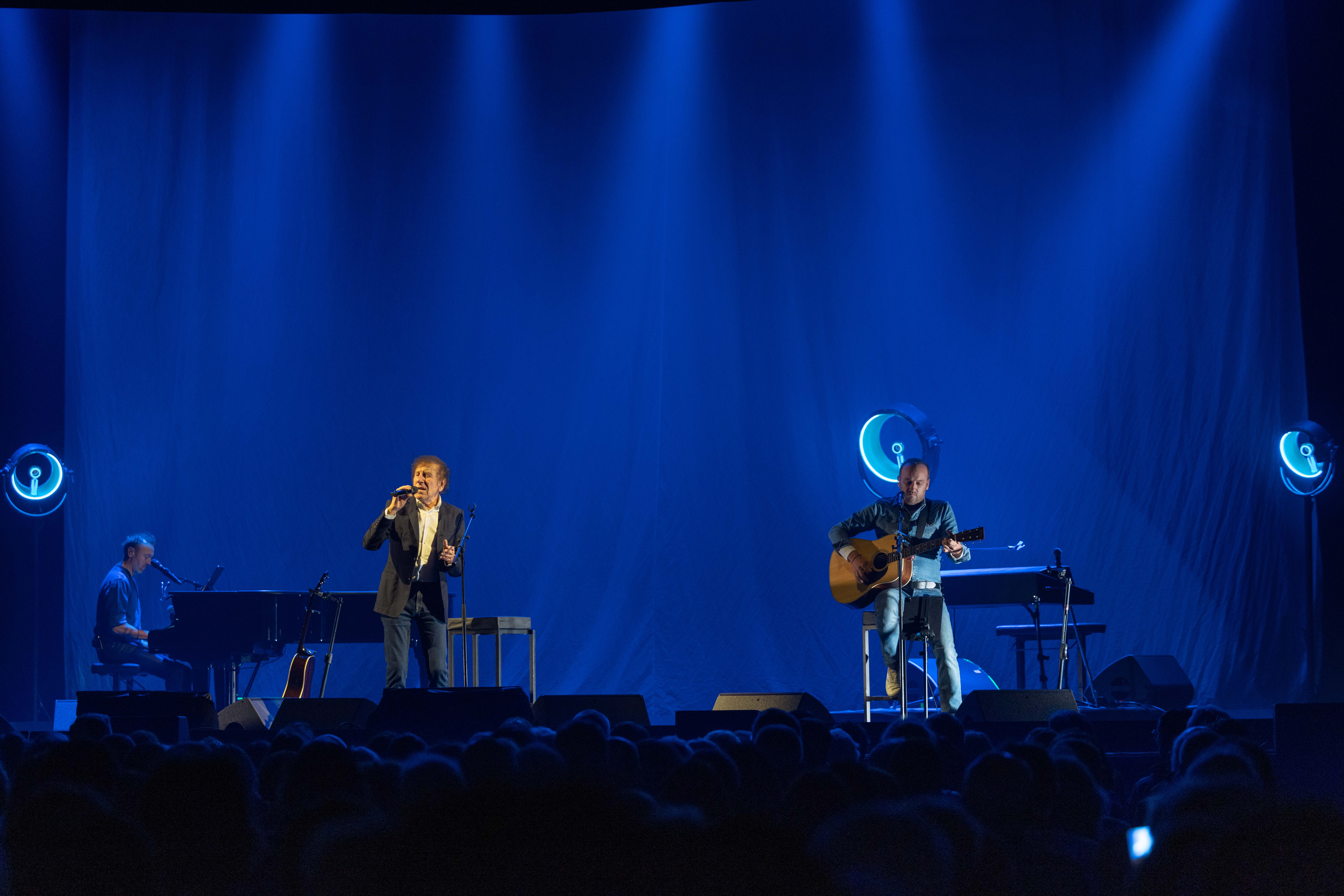 Alain Souchon accompagné par Ours et Pierre Souchon, en concert sur la scène du Pavillon Baltard dans le cadre du Festival de Marne, vendredi 26 septembre 2025.