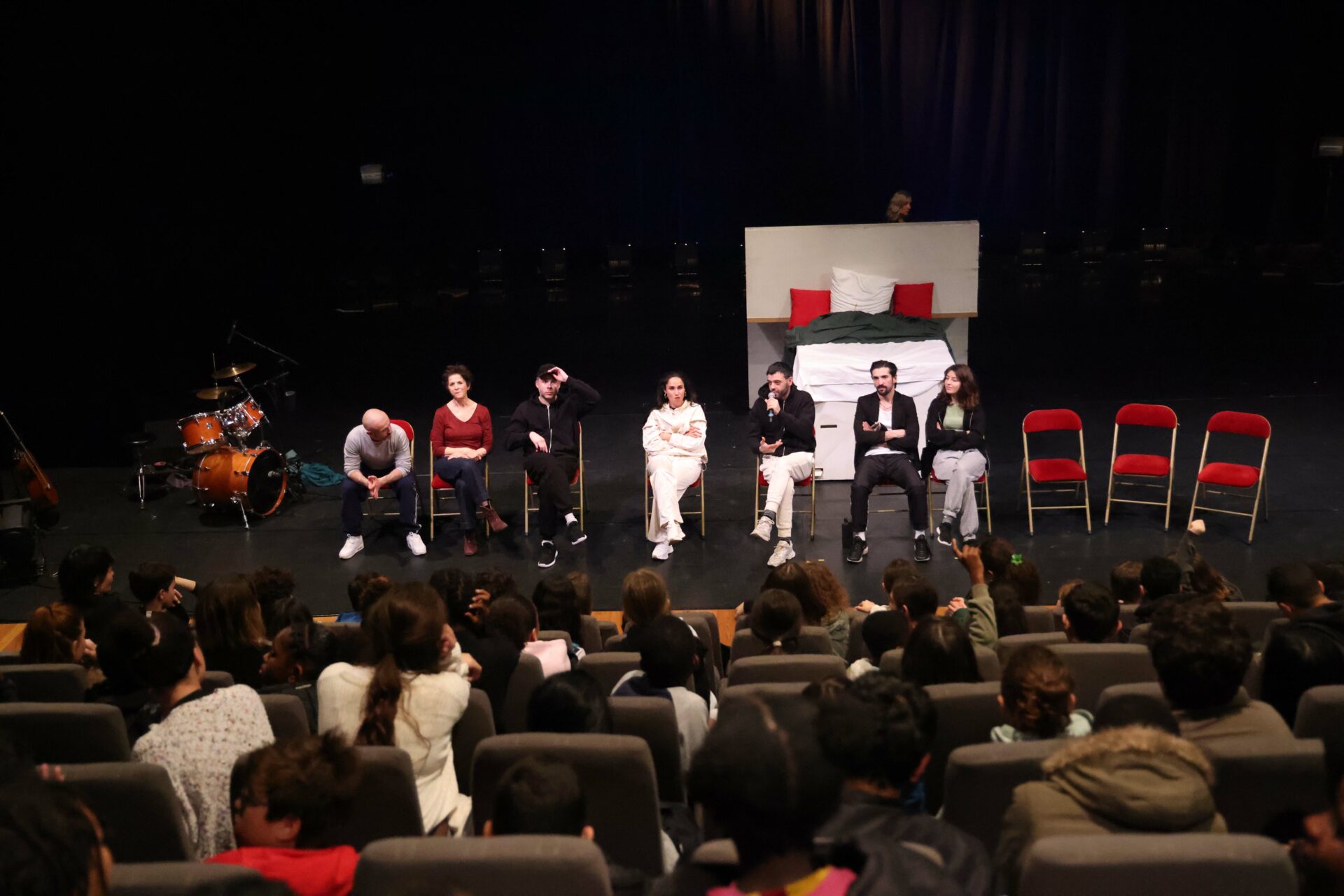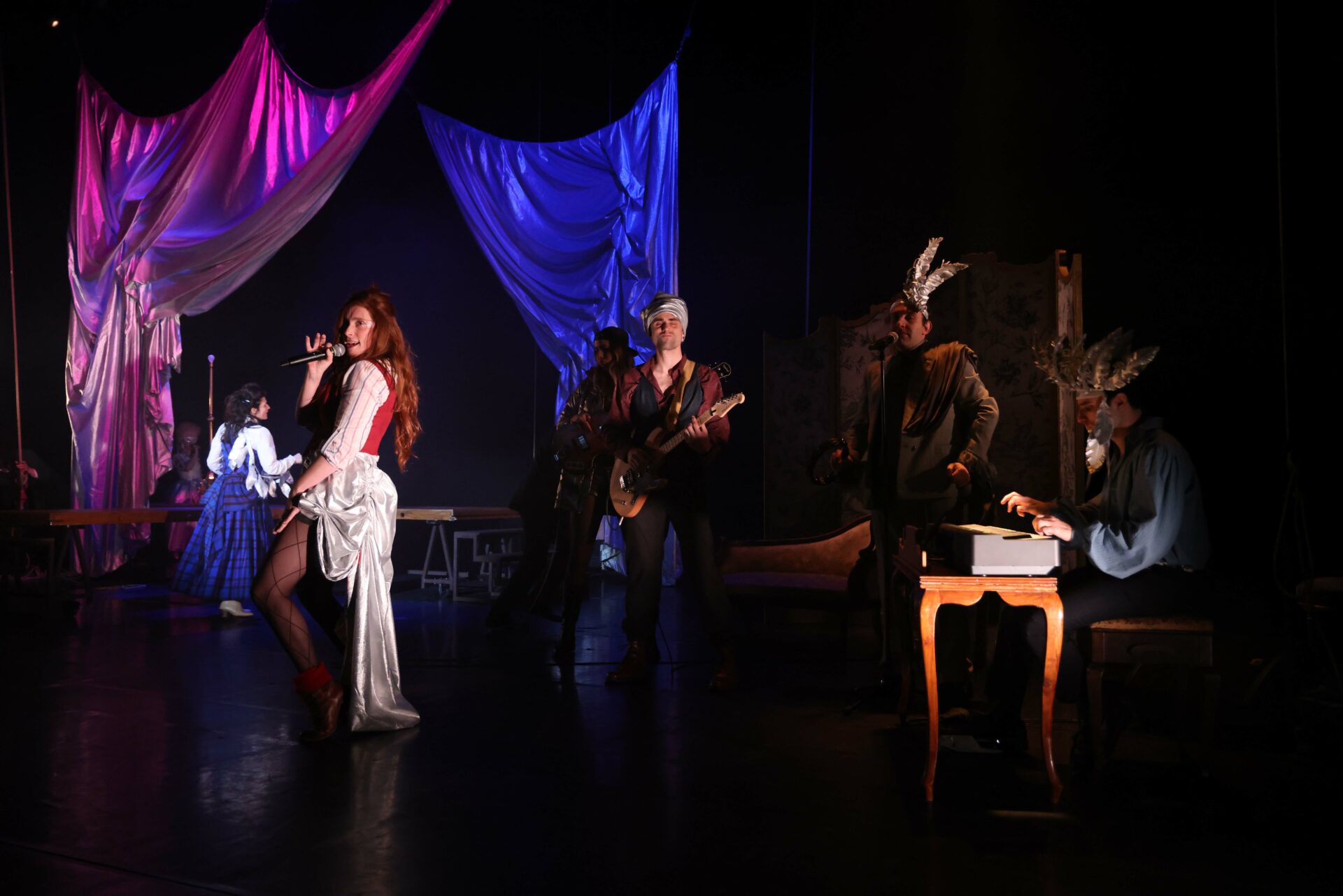 Olympe(s), une grande forme théâtrale et musicale autour de la figure d’Olympe de Gouges, qui s’interroge sur le chemin de libération de la parole des femmes, que ces femmes soient des actrices, des dramaturges ou des femmes politiques.