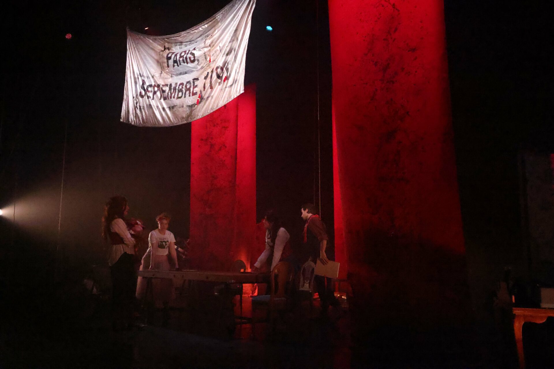 Donc l'action sera contemporaine pour nous, comme elle l'était pour l'auteur en 1845 lorsqu'il jette les premières lignes de son roman ("histoire, d'un saint, histoire d'un homme, histoire d'une femme, histoire d'une poupée"). Il existe, maintenant encore, des Valjean, des Fantine, des Thénardier, des Javert, des Marius, des Cosette, des Gavroche. Nous reprendrons à notre compte, avec les armes du théâtre, le projet de Victor Hugo : faire une esquisse des bas-fonds, rendre visible l’invisible.