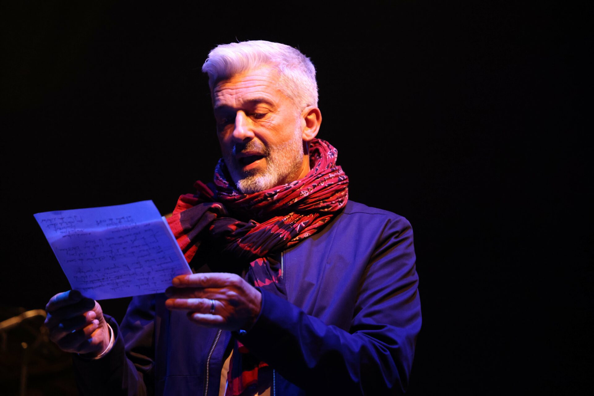 L'ŒIL D'OLIVIER La théâtralisation est dans le rythme, les ruptures, les nuances et la distanciation. Mis en scène très intelligemment par Benoît Giros, le comédien (Mickaël Chirinian) réalise une grande performance d’acteur. Bravo !