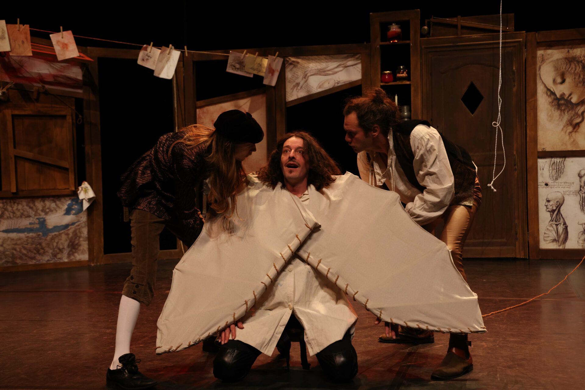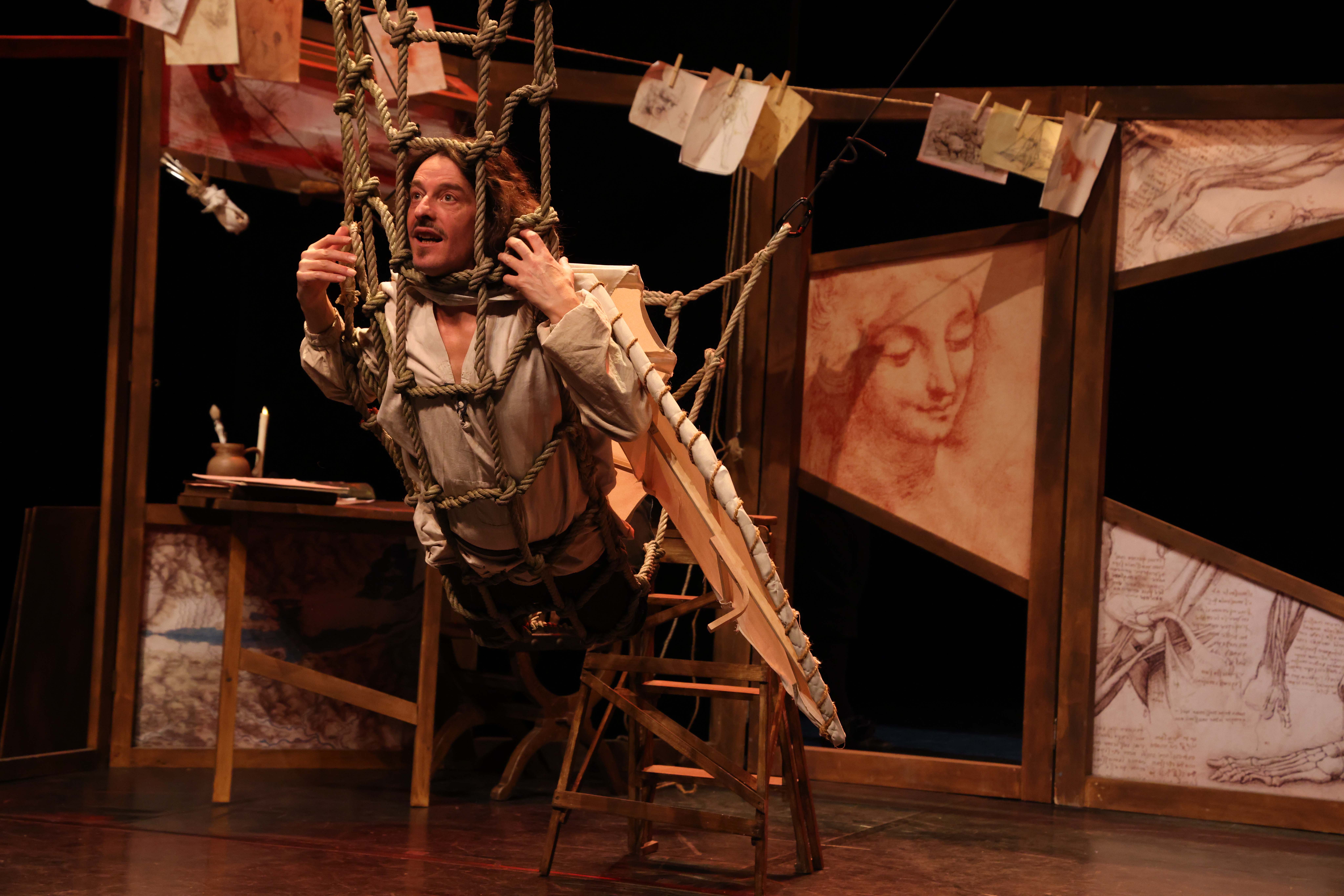 Un spectacle documenté, bondissant et poétique qui invite le spectateur à une immersion dans l'atelier de Léonard de Vinci où il va assister à l'une des plus grandes réalisations de l'Histoire de l'Art !